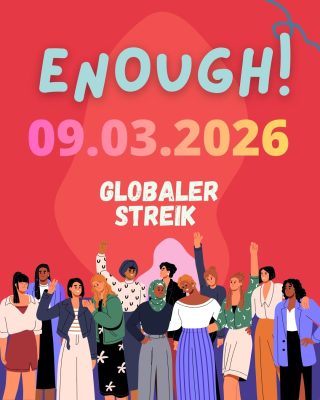Wir erweitern den Internationalen Frauentag, Sonntag (!) 8. März 2026, um den Streiktag, Montag, 9. März 2026. Die bedrohlichen Zeiten brauchen ein schärferes Instrument als Petitionen und geduldige Demonstrationen. Deshalb legen wir die bezahlte und unbezahlte Arbeit nieder und rufen auf zu vielfältigen Protestformen und Aktionen. Jede nach ihren Möglichkeiten.